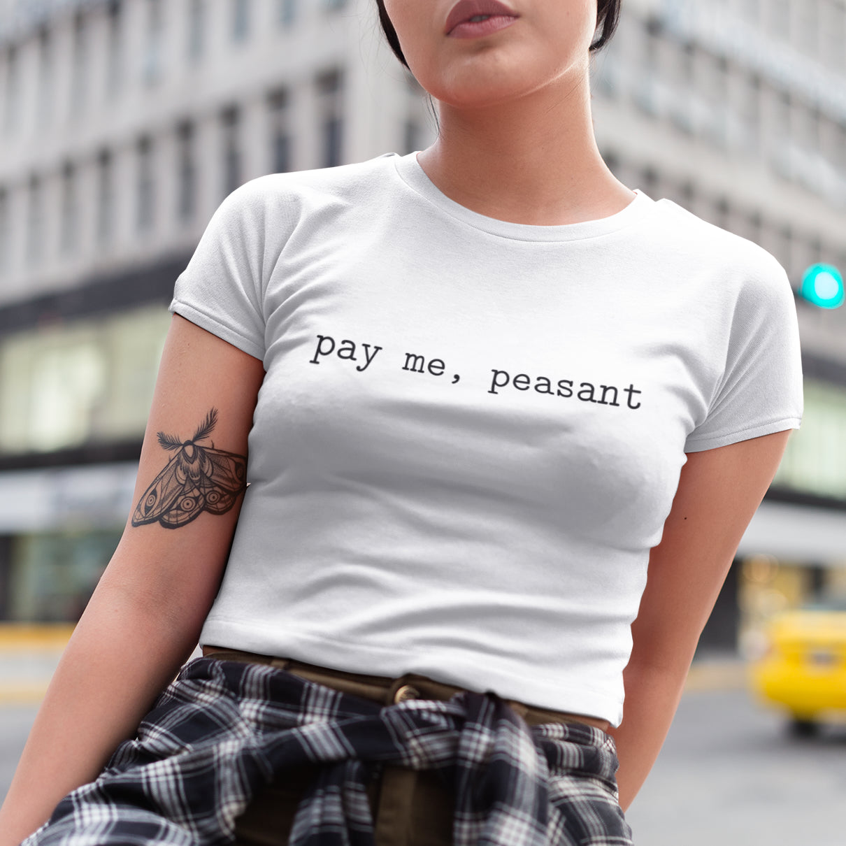 Step up and pay tribute with this fierce 'Pay Me, Peasant' crop top!